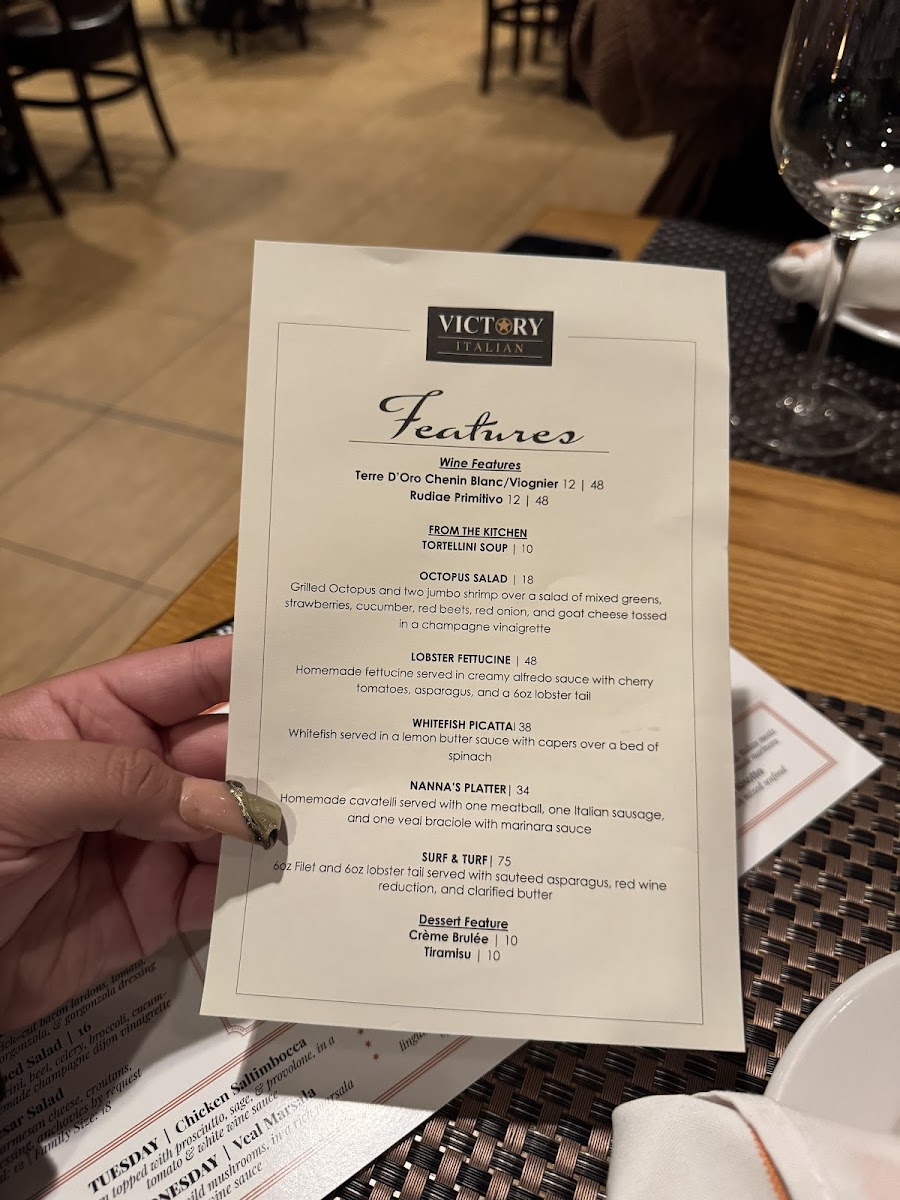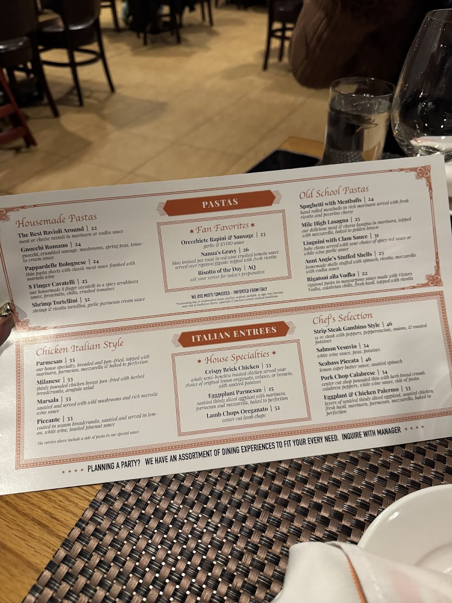 - Pork Chop Calabrese: A center-cut chop accompanied by a savory white wine sauce, featuring calabrese peppers for an extra kick, all for $34.